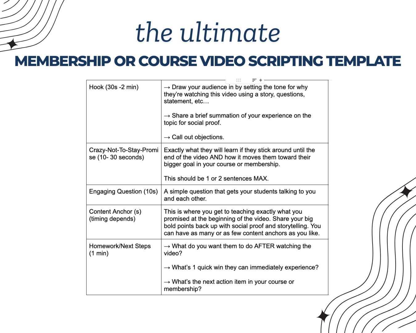 A 5-part fill-in-the-blank script that makes planning your next membership training video simple and stress-free, so you can hit record with confidence and keep your members hooked.